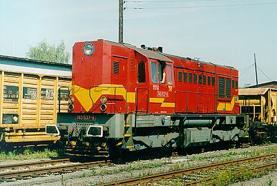 "Zárubecká posunka" 740.537 se vrací po obsluze manipulačního kolejiště Alexander do stanice Zárubek (foto Petr Štefek 18.10.2001).