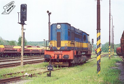 Lokomotiva 740.552 v kolejišti stanice Zárubek (foto Petr Štefek 23.5.2002).