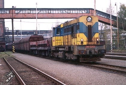 Lokomotiva 740.624 v kolejišti dolu Dukla (foto Petr Štefek 30.10.2001).