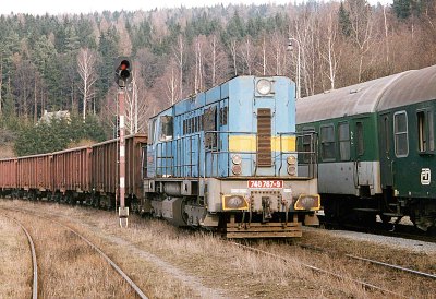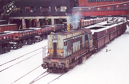 Při posunu v kolejišti dolu Lazy v Orlové (foto Petr Štefek 19.12.2001).