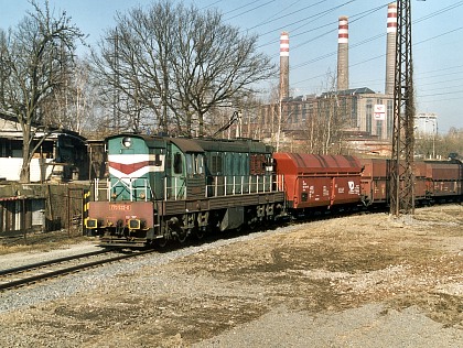 Při sunutí uhelného vlaku do elektrárny Třebovice (foto Petr Štefek 16.2.2001).